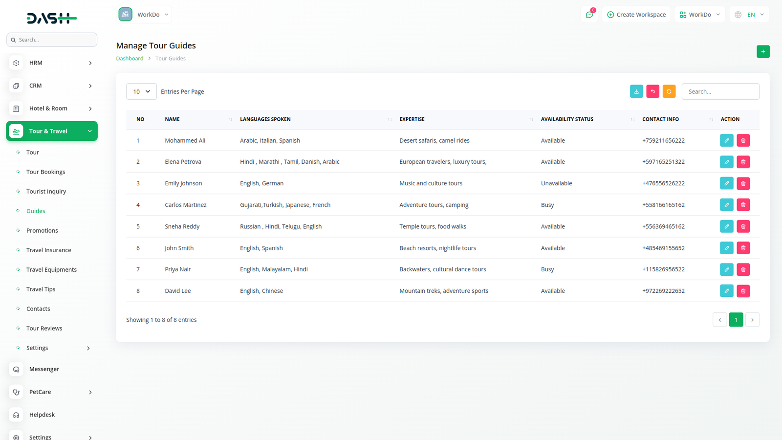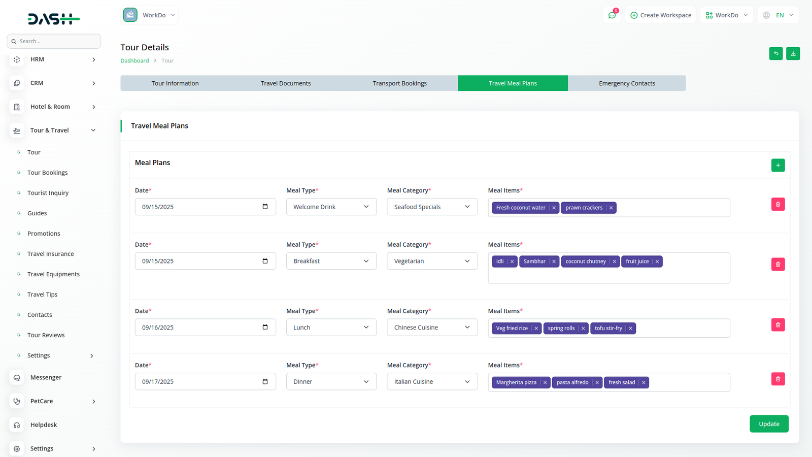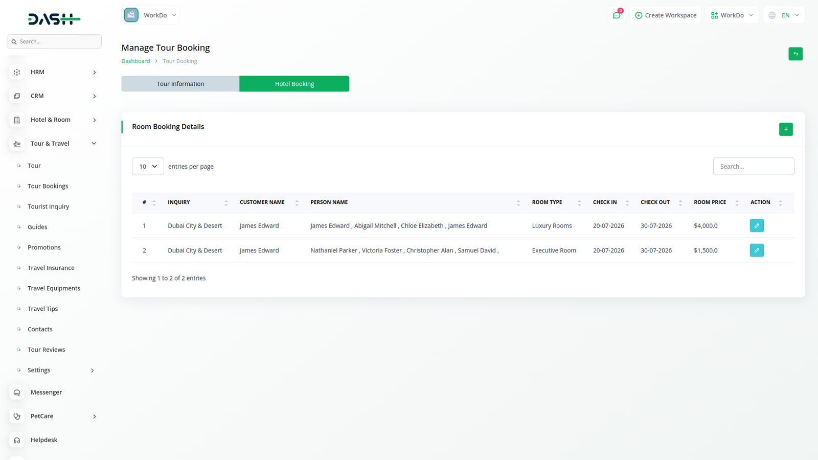 Het samenstellen van spannende tours en het beheren van hotelboekingen is nu makkelijker dan ooit met Facturatie. De Tours & Travels Management Module biedt een gebruiksvriendelijke interface waarmee je moeiteloos boeiende reisroutes kunt maken en naadloos accommodaties kunt boeken. Pas je tours en hotelverblijven gemakkelijk af, zodat je klanten een plezierige ervaring hebben en je reisbedrijf opvalt. Je kunt alleen hotelkamers boeken als je de Hotel- en Kamerbeheermodule al hebt gekocht.
