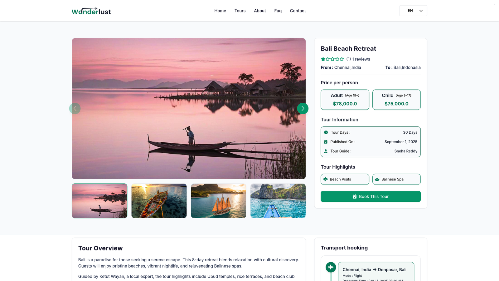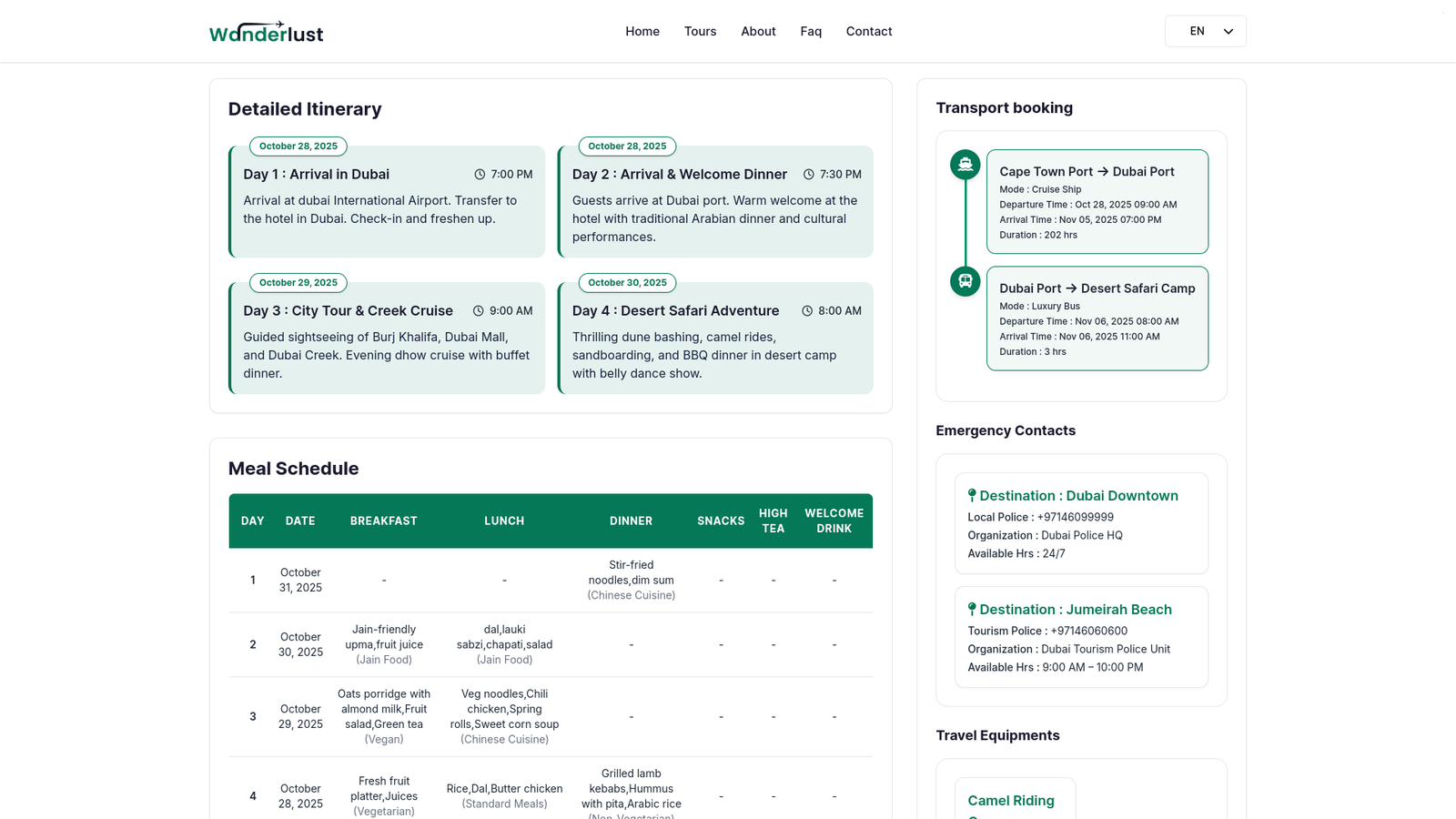 Maak en beheer moeiteloos tours met ons dynamische Tour Management-systeem. Voeg bestemmingen, prijzen, data en duur toe met slechts een paar klikken. Stel prijzen vast voor volwassenen en kinderen, beheer de beschikbaarheid van stoelen en wijs gidsen toe. Upload foto's, voeg highlights toe met iconen en geef klanten een duidelijk beeld van de opnames. Alle tours die je aanmaakt worden weergegeven op de tour slider-sectie en de Tours Page van je website om door te bladeren. Met een intuïtieve interface kan je team elke tour naadloos plannen en optimaliseren.
