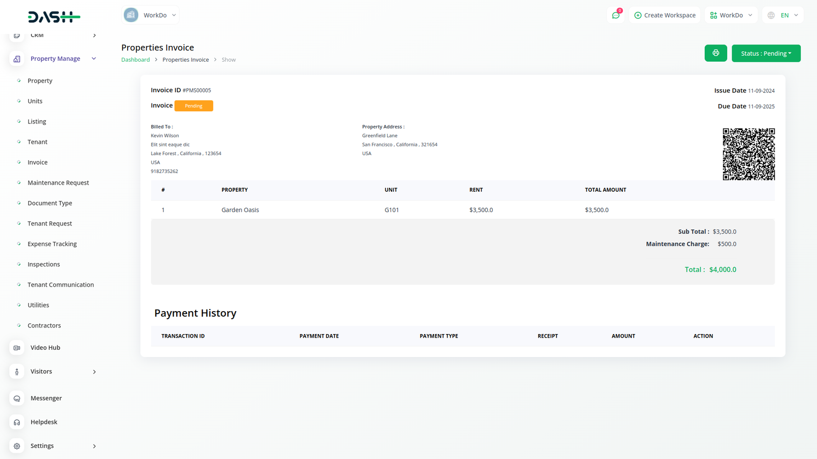 Beheer efficiënt panden, huurcontracten, huurders en onderhoudstaken met onze geïntegreerde Property Management Module, die een gestroomlijnde oplossing biedt voor vastgoedeigenaren. De huurovereenkomst identificeert het specifieke pand of de eenheid die wordt verhuurd. Het kan een beschrijving van het pand bevatten, inclusief het aantal slaapkamers, badkamers en andere relevante details.